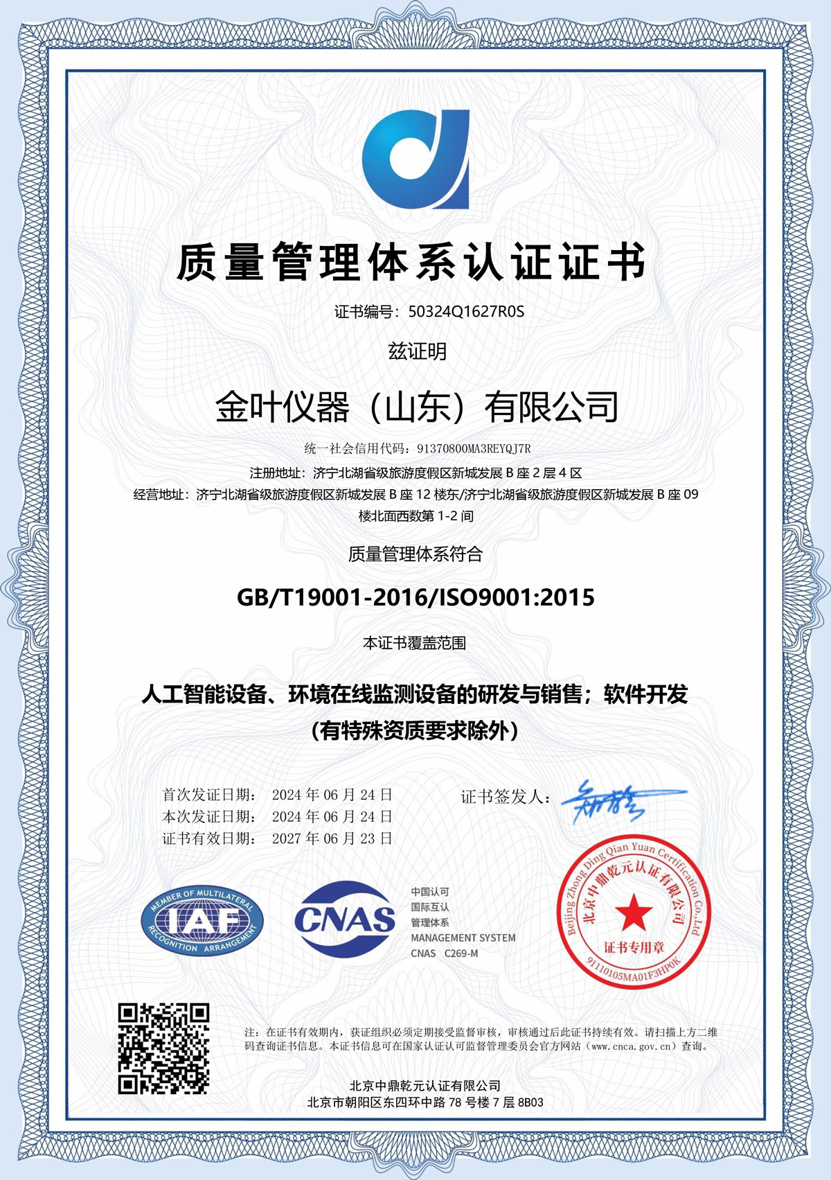 金葉儀器(山東)有限公司是一家集研發、生產、銷售于一體的環保物聯網企業,自成立以來,先后被評為國家高新技術企業、山東省專精特新中小企業、山東省創新型中小企業、山東省科技型中小企業、山東省軟件行業協會理事單位、濟寧市“一企一技術”研發中心,已在國內電子儀器界、在線監測設備行業,具有較高的影響力和美譽度。